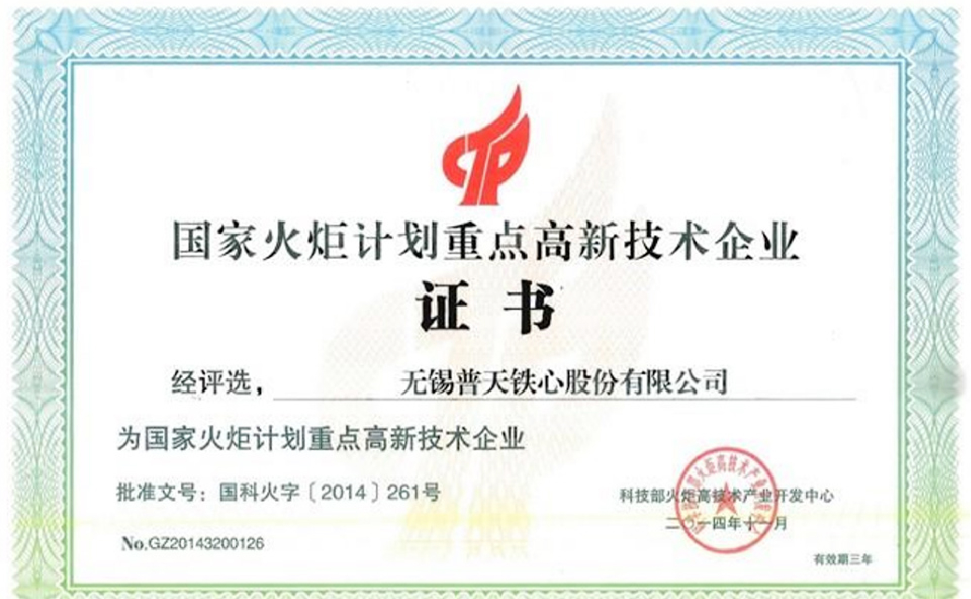 榮獲國(guó)家火炬計(jì)劃重點(diǎn)高新技術(shù)企業(yè)