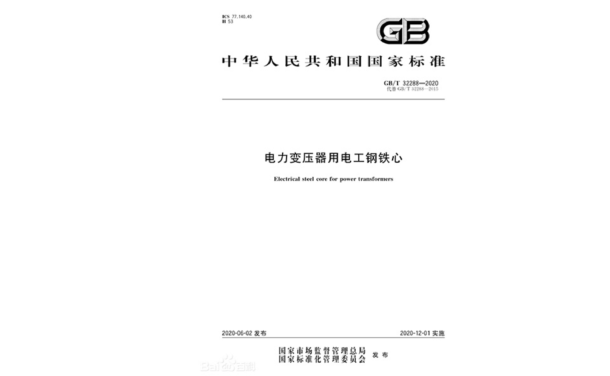 主導(dǎo)起草修訂的《電力變壓器用電工鋼鐵心》(GB/T 32288-2020)國(guó)家標(biāo)準(zhǔn)正式實(shí)施
