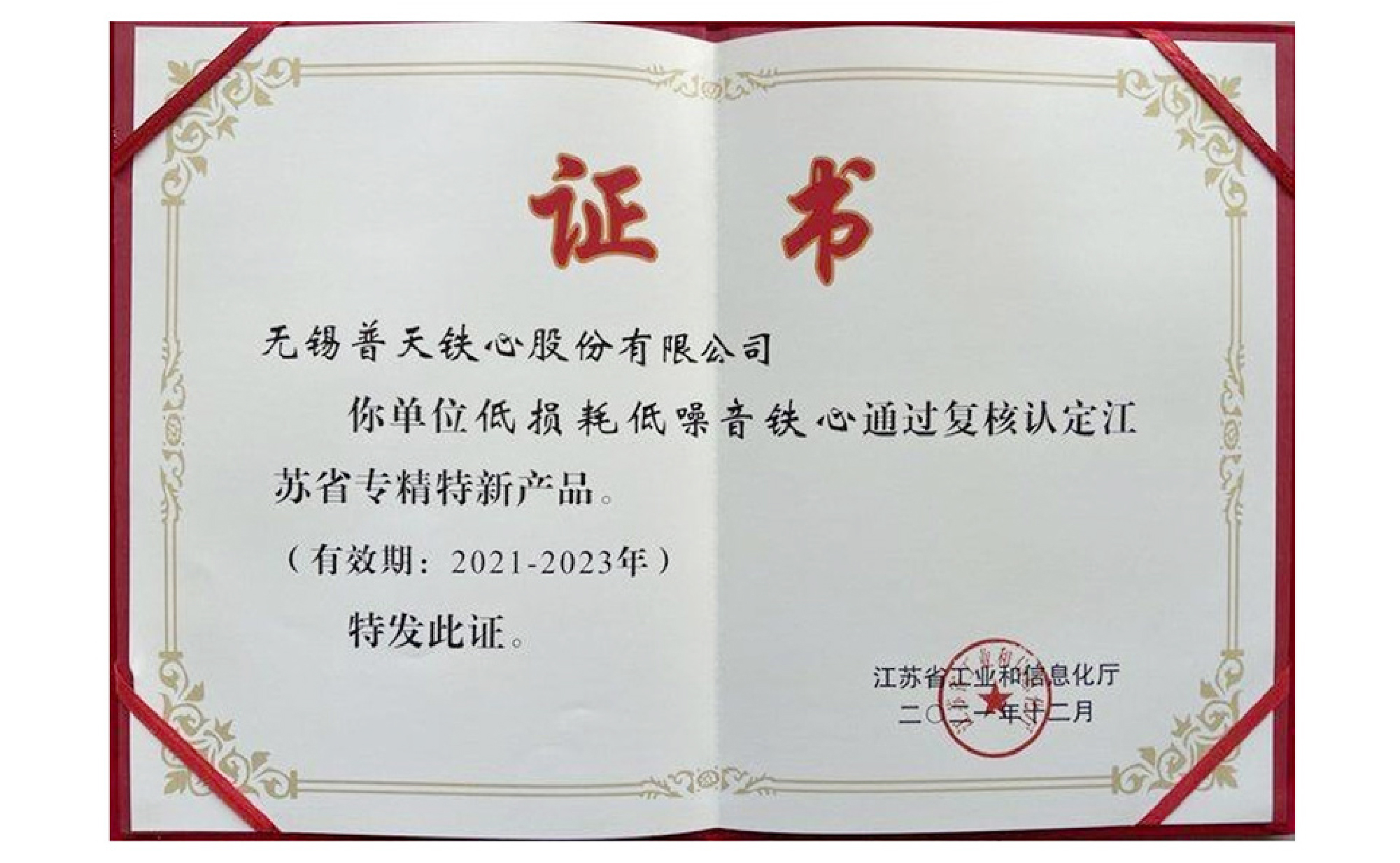 低損耗低噪音鐵心榮獲江蘇省專精特新產(chǎn)品