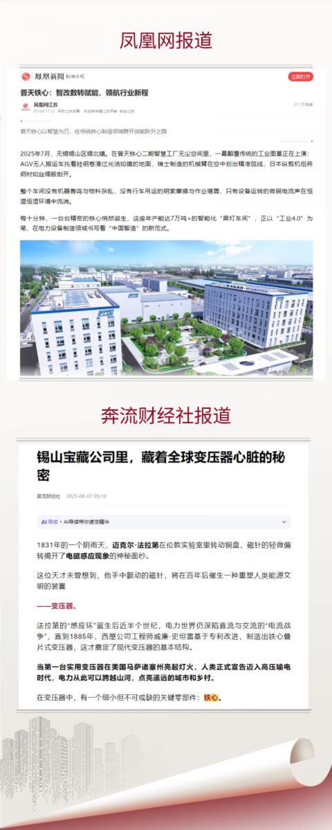 鳳凰網(wǎng)發(fā)文評價(jià)普天鐵心二期智慧工廠“從硬件協(xié)同到軟件賦能,從單點(diǎn)智能到系統(tǒng)互聯(lián)......為電力設(shè)備制造智能化升級提供了可復(fù)制的‘智造樣本’”。